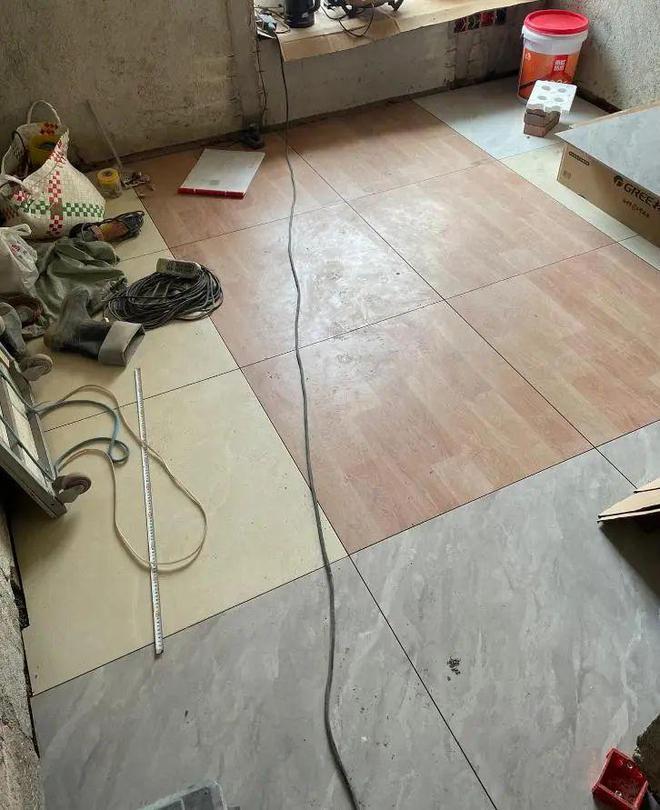 后来师傅建议我用杂砖找平,由于杂砖价格比较低,100平的面积差不多花了5000多块,比做自流平确实便宜了一些。