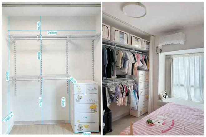 网友@阿雅:我的衣柜更简单,两层方管+木板收纳隔层,一根晾衣杆,一个成品抽屉收纳架,总成本1300块。
