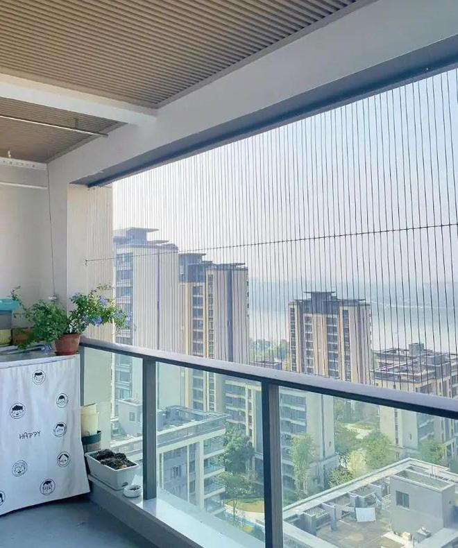 1)半开放式:给阳台安装上隐形防护网做半开放式设计,优点是通透、开阔、成本低,以及超有生活松弛感。